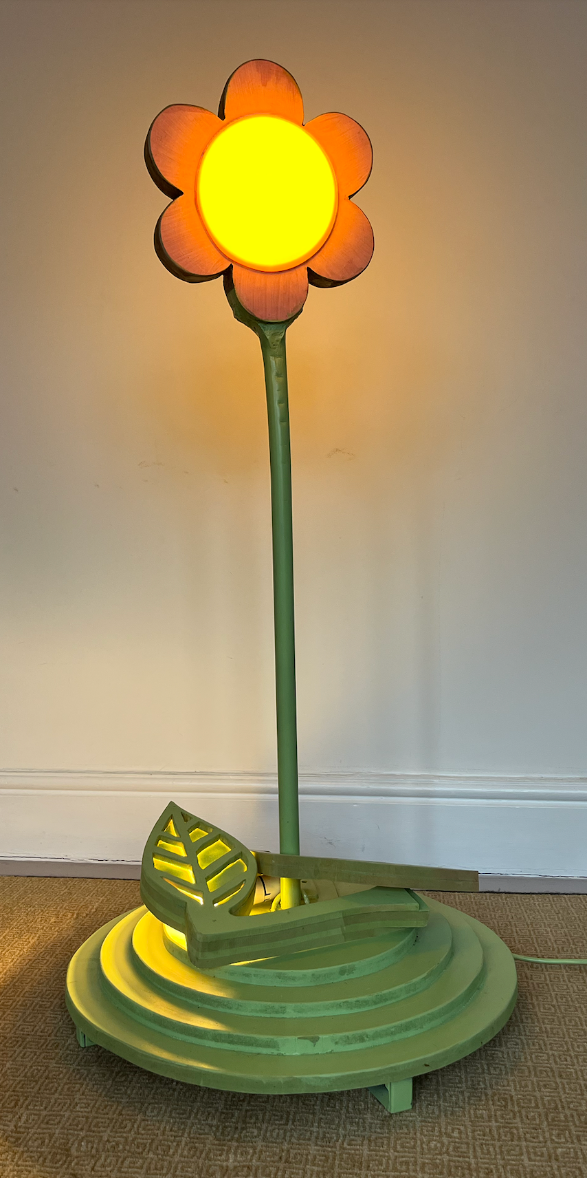 I was inspired by Marie Quant to build this functional, sculptural light. I used yellow acrylic which I had dome blown in order to diffuse the brightness and create warm hue.