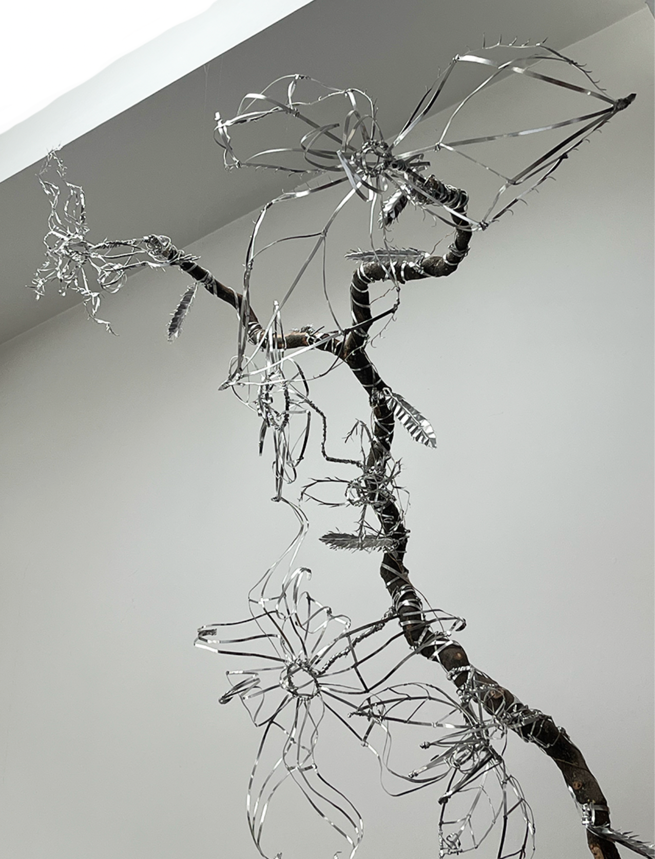I used aluminium strips bent into place with needle-nose pliers to make this botanical inspired sculpture. 150cm x 80cm x 80cm